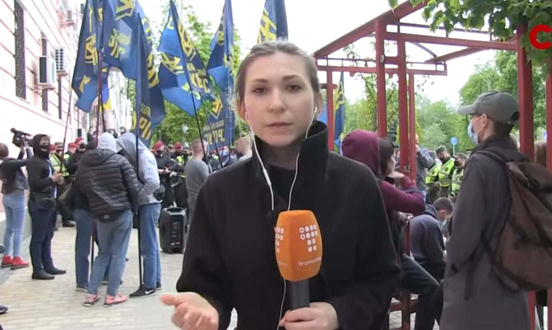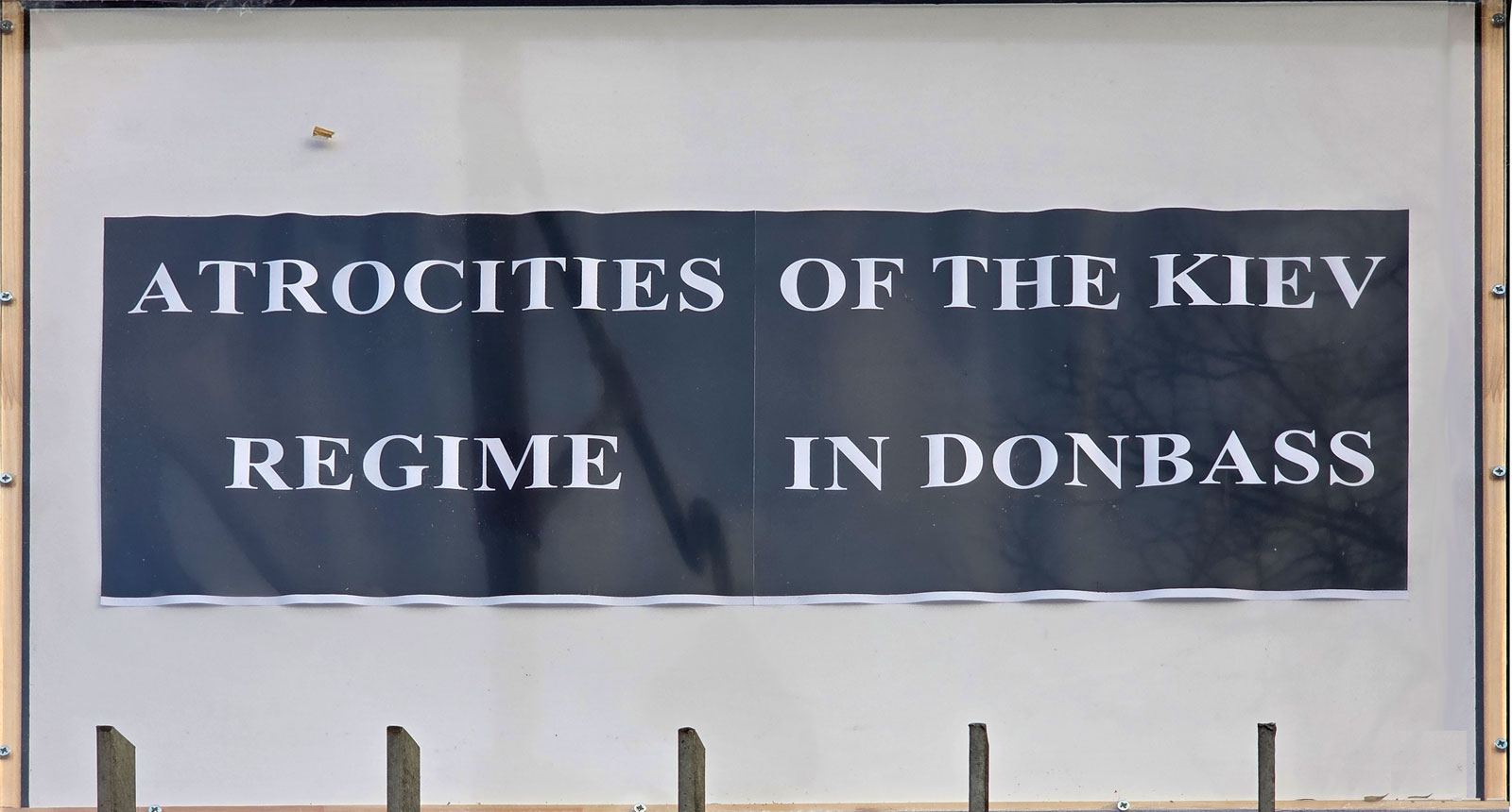 - ‘Wreedheden’ van het ‘Kiev-regime’: weer een bewijs dat Rusland Oekraïme domweg niet erkent. De streepjes onderin zijn de spijlen van het ambassadehek.